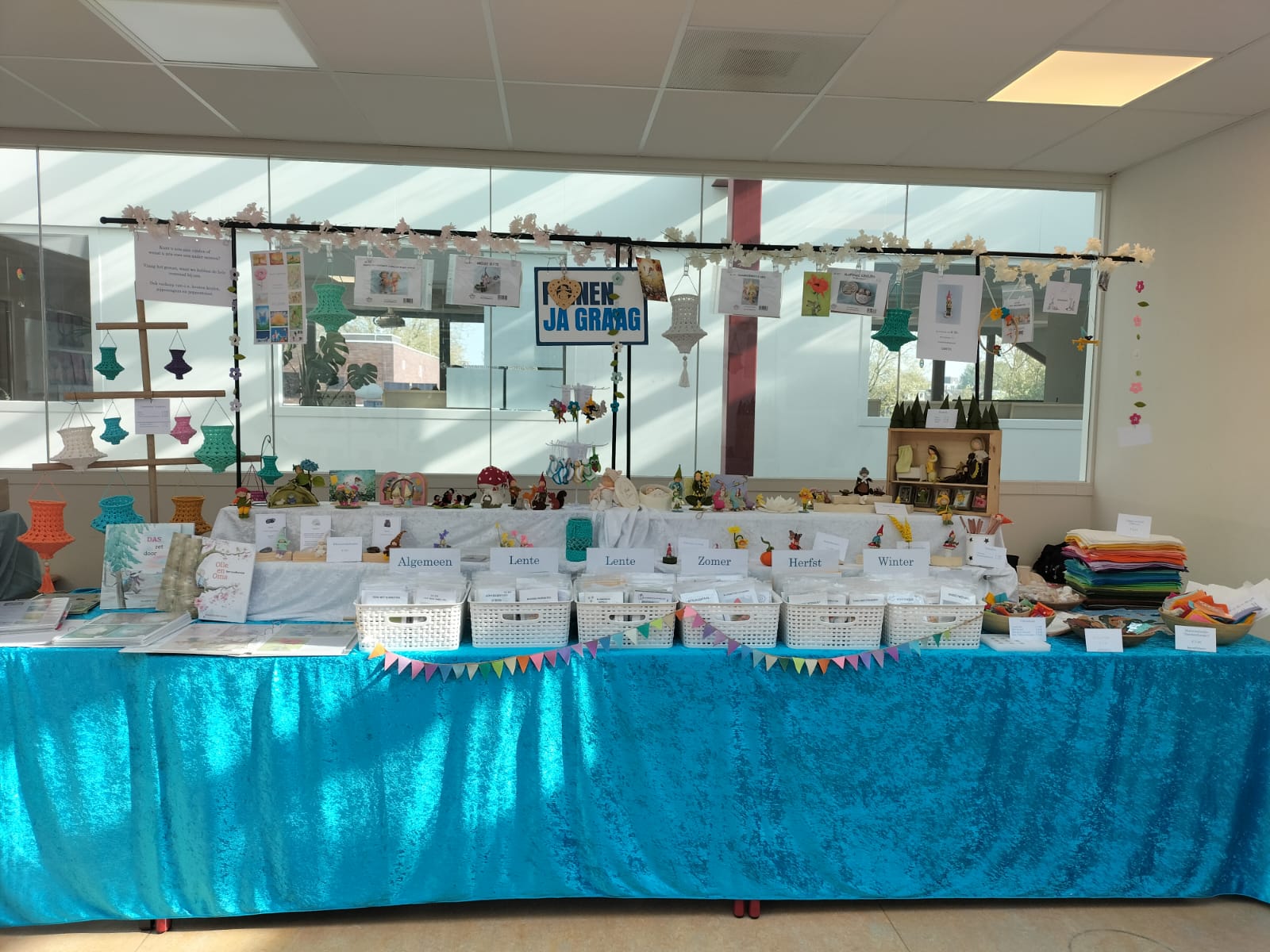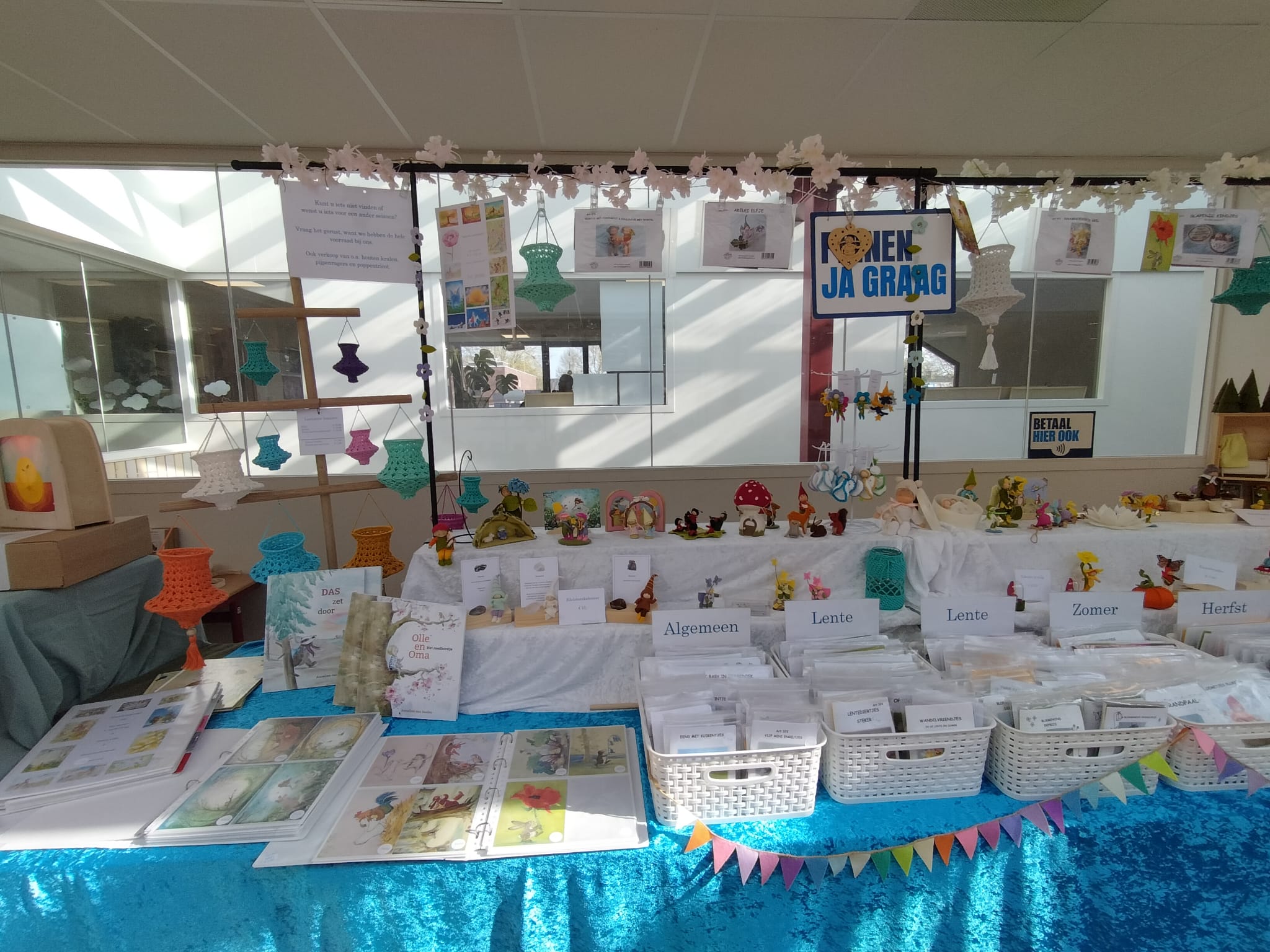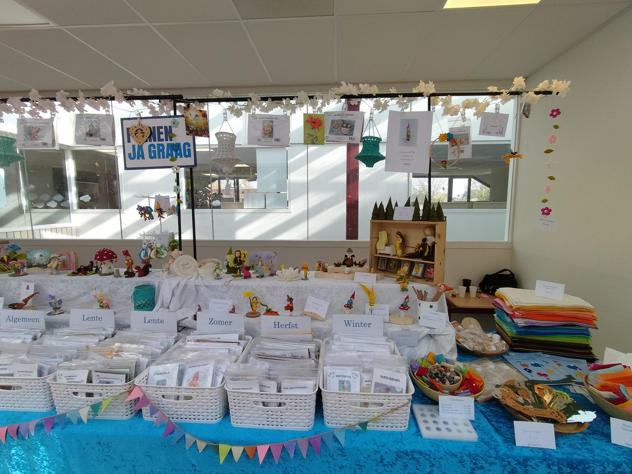 Verder heb ik verteld over de voorbereidingen van de lentemarkt van de Leewenhartschool in Oud-Beijerland. Zij hebben als thema “Jungle”. Wie mij kent weet dat ik graag mijn kraam aanpas aan het thema van de school dus ook deze keer. Geen bloemen aan de kraam, maar bladeren en een liaan. Wie weet zie je nog wel een aapje voorbij slingeren….