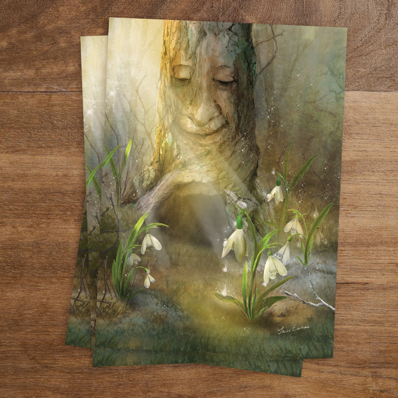 Toelichting van Iris Esther: Het is meer dan een jaar geleden dat twee vrienden en ik een nacht in een yurt doorbrachten. De wind waaide buiten, maar binnen was het heerlijk en knus terwijl we een vuur brandend hielden in een houtkachel. Het was een geweldige nacht met prachtige gesprekken, drummen en muziek maken. We spraken urenlang over de grote en kleine dingen in het leven en wat het fascinerend maakt. Ik herinner me dat ik zei dat, sinds ik in het moederschap stapte, mijn perspectief op bijna alles veranderd was; Hoe ik gewoon wilde verbinden met de schoonheid van kleine dingen en tekeningen daarvan wilde maken. Zoals dauw op een sneeuwklokje... En zo... dat is hoe een gesprek veranderde in een illustratie.