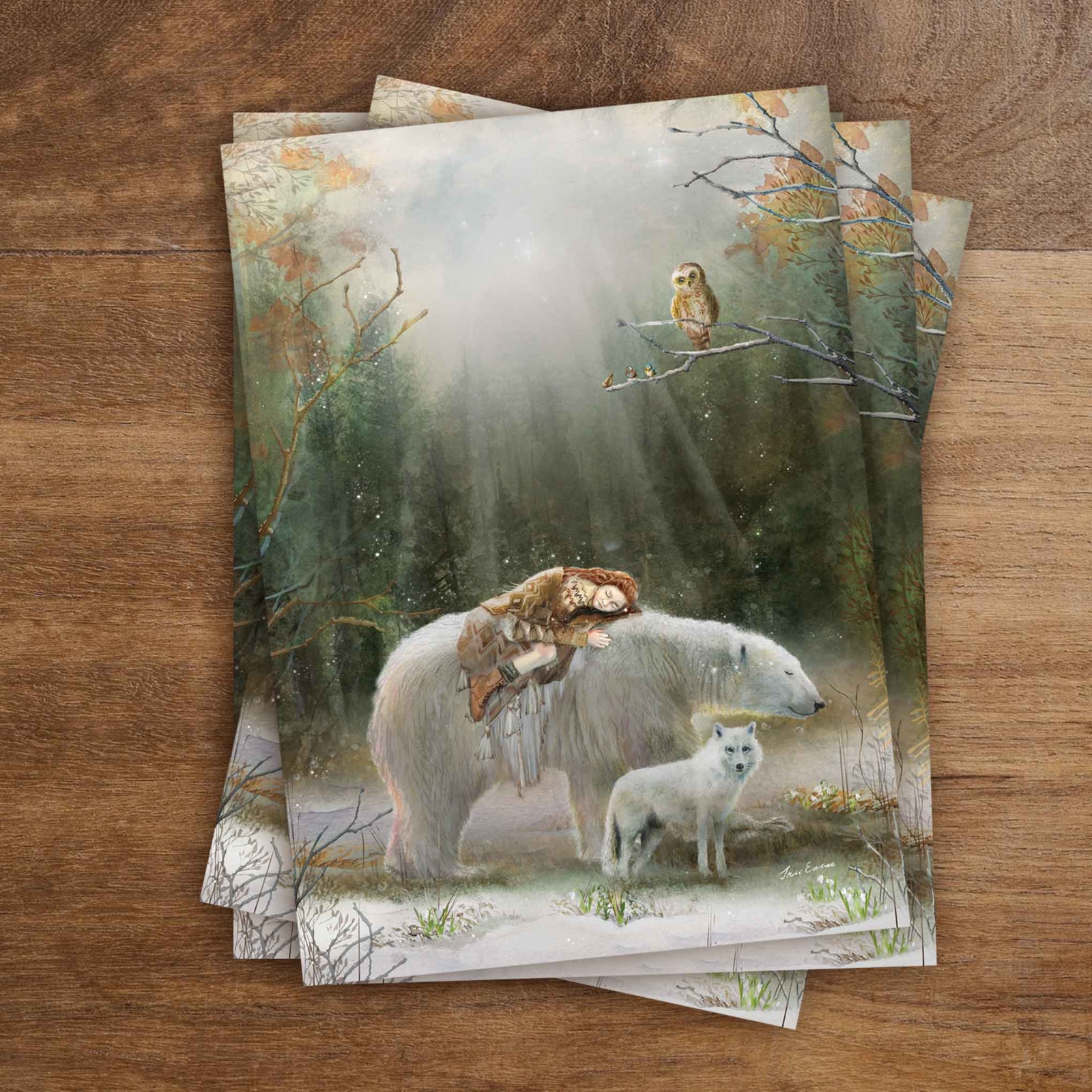 Een woordje van Iris Esther: Ik stelde me voor dat de winter als een enorme trage ijsbeer zou kunnen zijn die alle tijd neemt om ons terug naar de lente te wandelen. En terwijl we rusten en onze lichamen verwarmen onder gezellige dekens voor het warme vuur, zal de winter met al haar metgezellen over ons waken terwijl we zachtjes terugglijden naar helderdere dagen....De lente komt eraan, lieve vriend, houd gewoon nog even vast aan je ijsbeer...